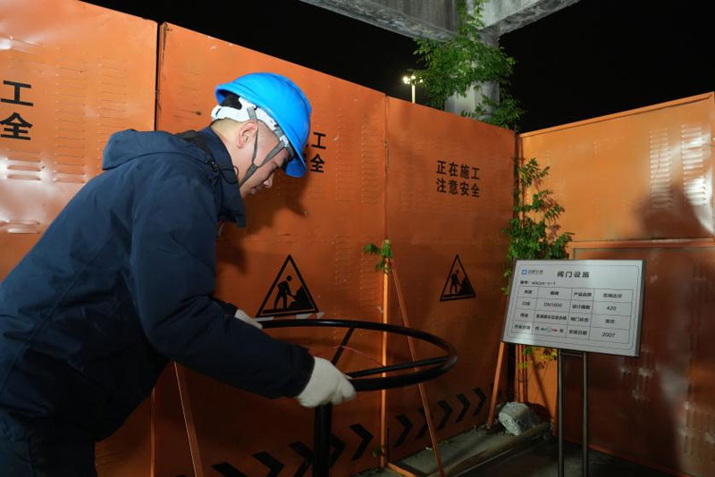民生为本:“无感停水”见线日用水晚高峰前,随着五水厂DN1800进水主控阀缓缓打开,清澈的原水流入制水生产线,回到正常状态的原水供应。