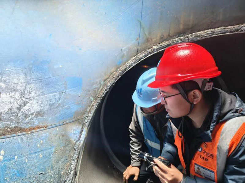11月6日凌晨,五水厂东北角施工点灯火通明。实施工程人员专注开展管道切割作业,监理人员手持图纸紧盯焊缝质量,检测工作员随时待命开展焊缝探伤,专职安全员来回巡查把控现场安全,各环节衔接有序、高效推进。